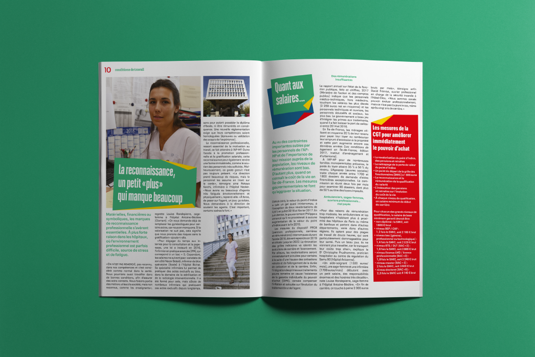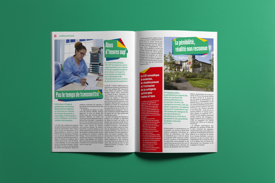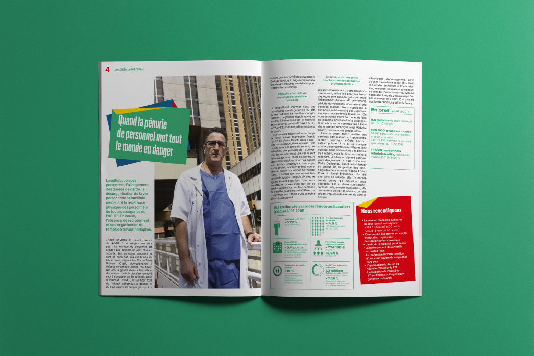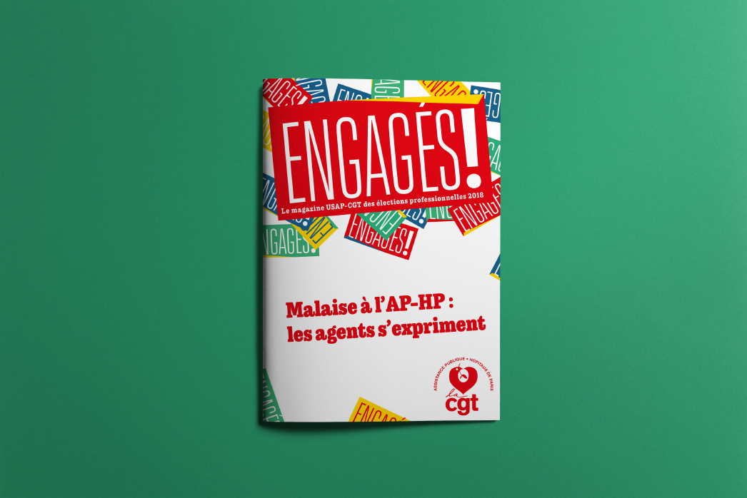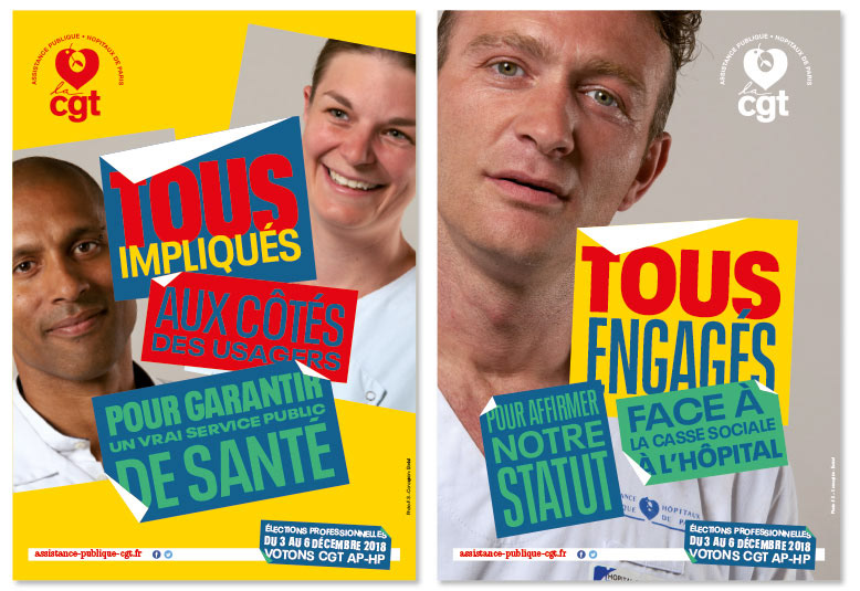 Campagne de communication de l’USAP pour les élections des syndicats professionnels de l’APHP, reposant sur l’idée que l’hopital de demain doit avoir un visage humain. Affiches, autocollants et journal.
